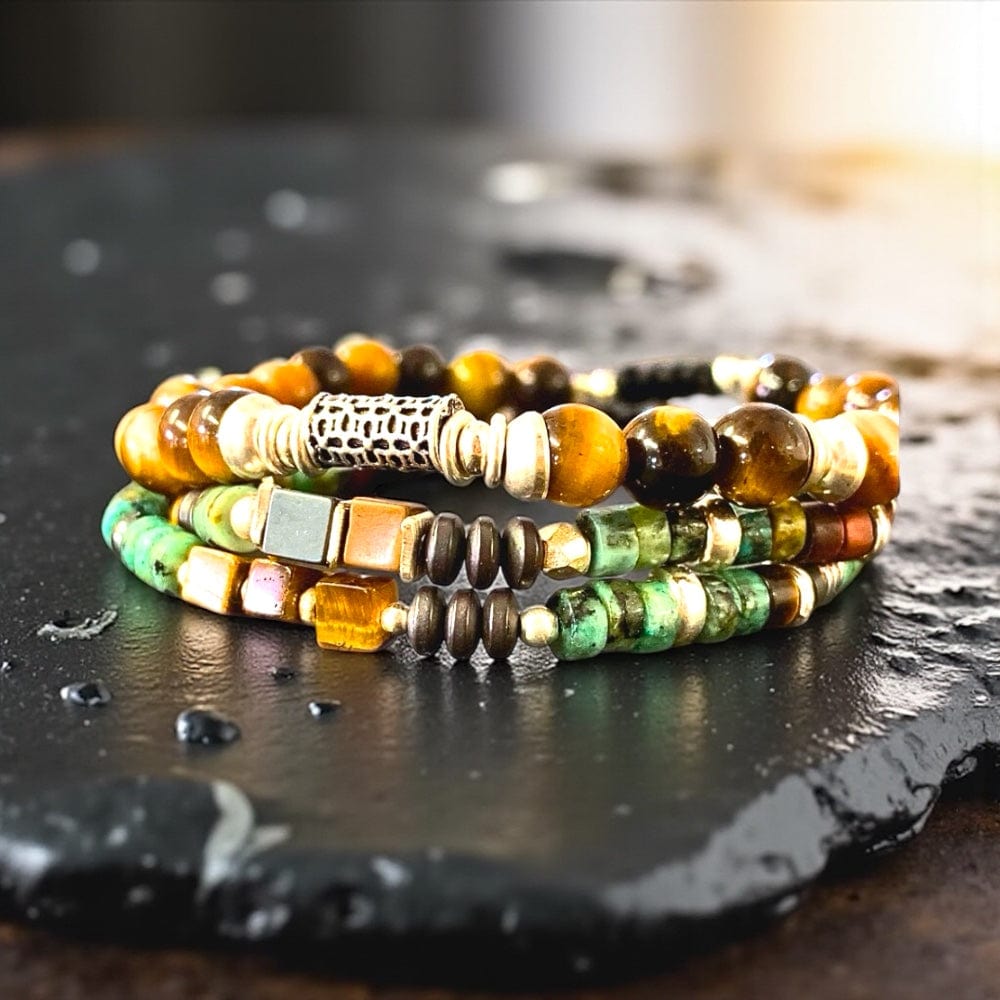 Des bracelets en pierres naturelles et argent 925, conçus pour les hommes qui aiment ce qui durent, ce qui a du sens. Style brut tout en étant élégant, matières vraies.