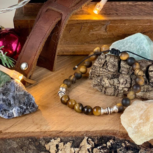 Bracelet Oeil de Tigre mat et brillant & Hématite – Force et élégance masculine